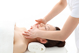 お顔全体のツボを押し、リンパの流れにそって流します。最後は、筋肉マッサージをして、整肌で